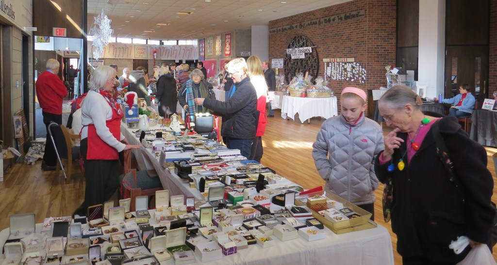 The narthex is totally transformed! Please come, bring a friend, and shop Saturday.